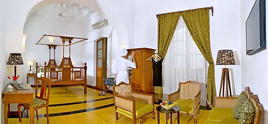 Palais De Mahe blends heritage charm with contemporary comfort. A private entrance opens to inviting balcony spaces and accommodations featuring extra-long beds, while an outdoor pool glistens by day. Dining options include Lez ALZES and Earth Café, and practical touches like free private parking, free Wi-Fi, and non-smoking rooms help every arrival feel at ease.
